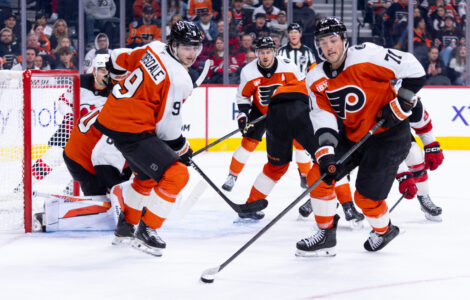 PHILADELPHIA (AP) — Tyson Foerster and Matvei Michkov each grabbed a share of three stacked pucks dated and noted for the Flyers forwards role in the fastest three goals scored in team history.