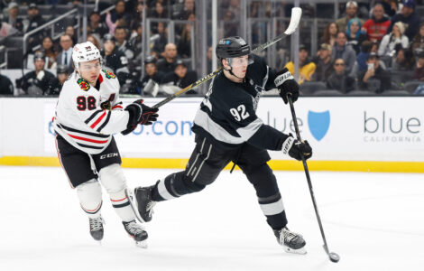 LOS ANGELES (AP) — Brandt Clarke scored twice to help Los Angeles break out of an offensive funk, Darcy Kuemper made 23 saves and the Kings beat the Chicago Blackhawks 6-0 on Saturday night to split a two-game set.