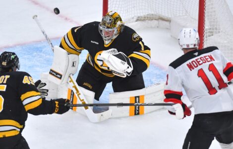 BOSTON (AP) — Morgan Geekie scored his 22nd goal, Jeremy Swayman made 29 saves and the Boston Bruins beat New Jersey 4-1 on Saturday night, sending the Devils to their season-high fifth straight loss.