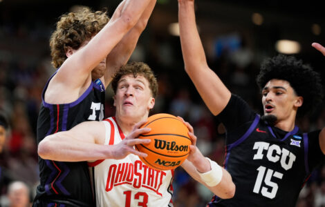 SAN DIEGO (AP) — Darryn Peterson made four 3-pointers and scored 28 points, and fourth-seeded Kansas squandered most of a 26-point lead before holding off scrappy NCAA Tournament newcomer Cal Baptist 68-60 on Friday night.
