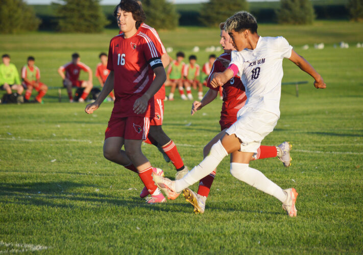 FAIRMONT – The New Ulm High School boys soccer tandem of senior Jackson Ocampo and junior Methodious Amoah powered the Eagles to an 8-0 victory over the Fairmont Area boys on Tuesday night.