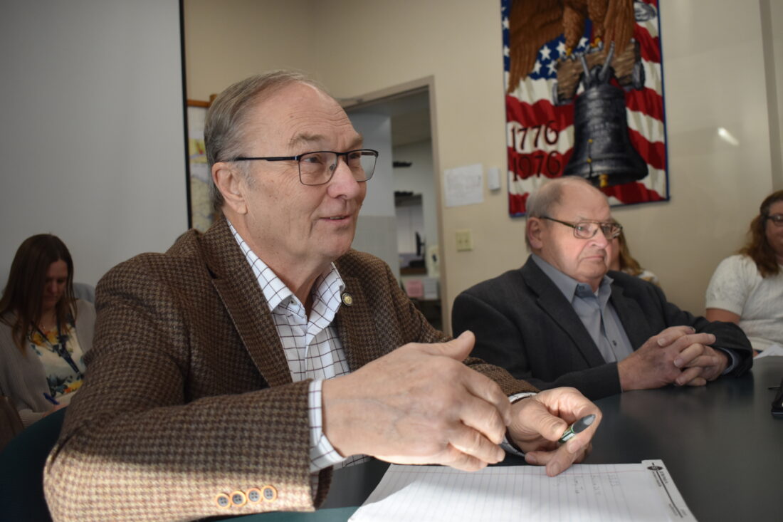 Staff photo by Fritz Busch District 15B Rep. Paul Torkelson, R-Hanska, shares his perspective on the upcoming legislative session to Brown County Commissioners Tuesday. District 15 Sen. Gary Dahms, R-Redwood Falls is pictured at right.