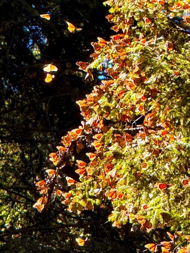 A kaleidoscope of monarch butterflies take flight in one of central Mexico’s monarch sanctuaries. Deb Steinberg and Julie Gartner said they were fortunate to arrive at the sanctuary under the right conditions to see the monarchs fly. Steinberg said to see the color in persons was unbelievable. Photo by Deb Steinberg
